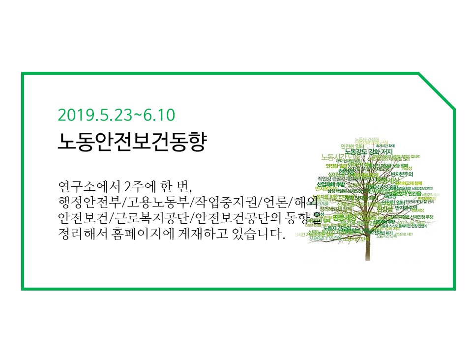 | [노동안전보건 동향] 2019.06.11~06.28 (0) | 2019.06.28 |