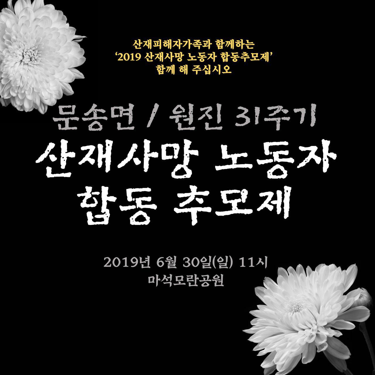 '2019 산재사망 노동자 합동추모제' 함께 해주십시오