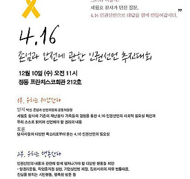 세월호 참사 국민대책회의와 존엄과 안전위원회는 오는 12.10 세계인권선언의 날을 맞아 "4.16 존엄과 안전에 관한 인권선언" 추진 대회를 진행합니다.